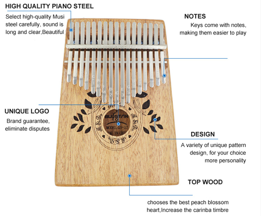 • KATTAVA ALL-IN-ONE-TARJOAJEN ASETUS: Kalimba-sarjamme sisältää 17 avaimen kalimbaa, kuinka soittaa laulukirjaa, mikrokuitukiillotusainetta, kantolaukun